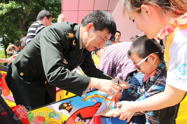 舉辦“同一個夢想”助殘公益活動,白曉忠院長和小朋友們在一起