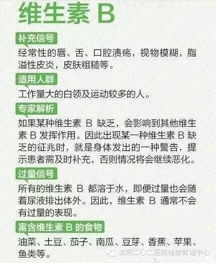①角膜干燥、毛發(fā)干枯:缺維生素A;②經(jīng)常性的唇、舌、口腔潰瘍,視物模糊,皮膚粗糙:缺維生素B;③乏力、食欲差、體重減輕、性情暴躁、關(guān)節(jié)疼痛,牙齦出血:缺維生素C……看圖對照看看你缺哪一種~~