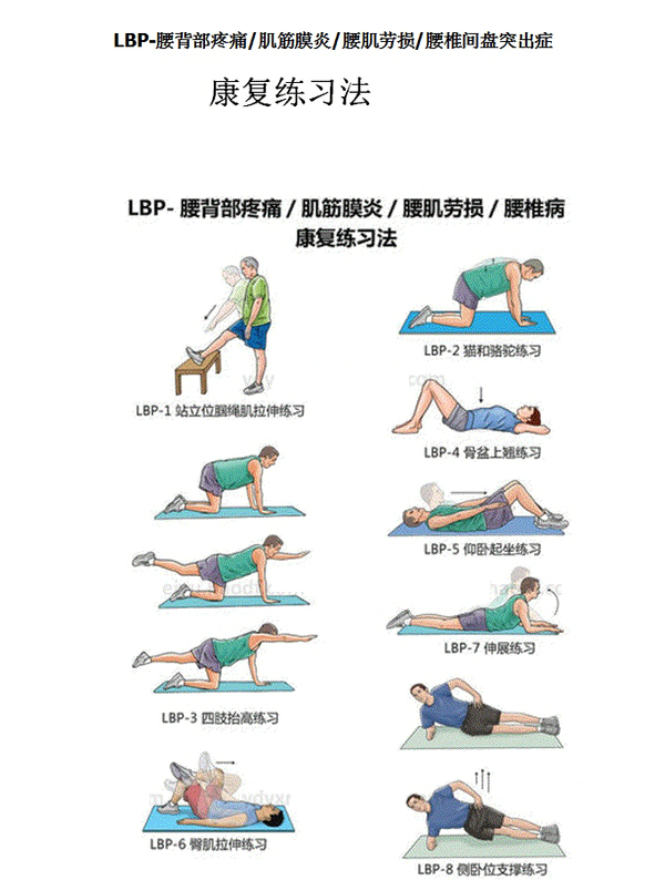 仰臥位:在頸和膝下墊枕頭,保持膝部稍彎曲;在改變體位時(shí)要繃緊腹部肌肉,在床上滾動(dòng);不要伏臥位,這種體位對(duì)腰部的牽拉較大。
