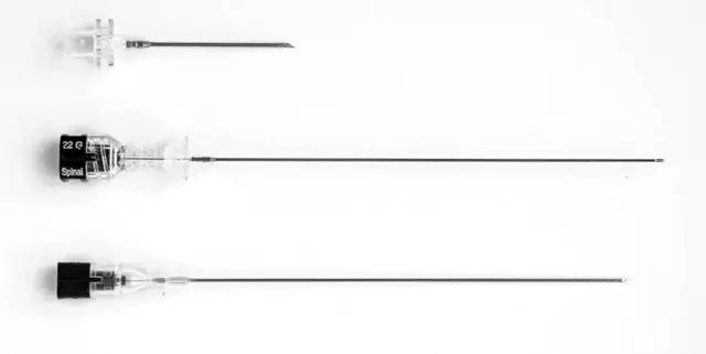圖 1 為脊椎穿刺針類型顯示微創(chuàng)針的「精確」脊椎套管 (上);穿刺針 (中);創(chuàng)傷「切割」脊椎穿刺針 (下)。