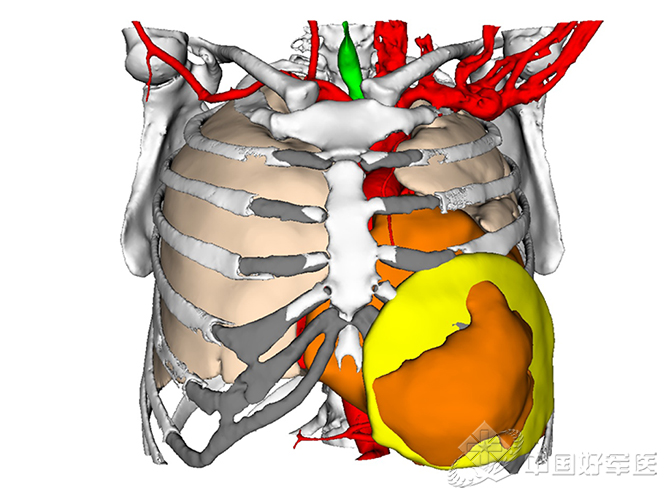 胸腔巨大腫瘤和胸腔臟器的術(shù)前三維重建圖像