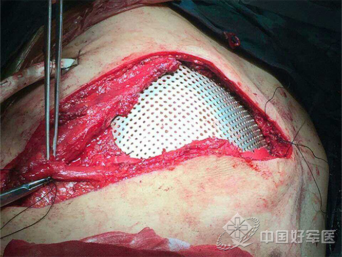 裝置3D適形鈦板的胸壁重建手術(shù)術(shù)中照片