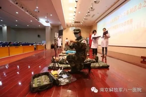 經(jīng)過前期精心籌備,內(nèi)科、外科、門輔診三個片區(qū)共40名護理人員進行了初賽,經(jīng)過激烈的角逐,最終16名選手入圍決賽。比賽內(nèi)容主要是模擬戰(zhàn)場傷員受傷后的一系列操作,主要包括:三角巾固定術、心肺復蘇術、弱光下靜脈輸液術。競賽采取統(tǒng)一的評分標準,并邀請外院專家擔任評委,比賽過程嚴肅認真、井然有序,評委們專心致志、嚴謹評分,整個現(xiàn)場氣氛緊張和諧。