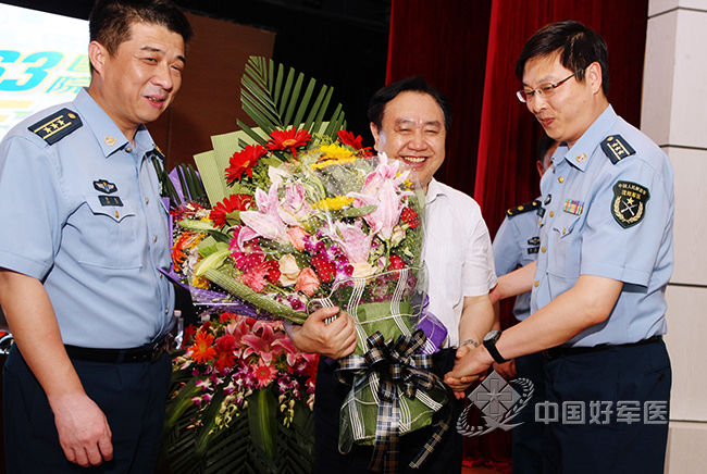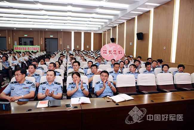 畢業(yè)于第四軍醫(yī)大學(xué)的醫(yī)護(hù)人員在一旁就座,他們打出了“校長(zhǎng)您好”和“再聽校長(zhǎng)教誨,再立打贏新功”的標(biāo)語(yǔ)歡迎老校長(zhǎng);授課結(jié)束時(shí),學(xué)生代表、綜合內(nèi)科主任李春田走上臺(tái)向院士獻(xiàn)花,消化科主任邵麗春作為同專業(yè)代表向院士獻(xiàn)花,樊院士高興地同她們合影留念。