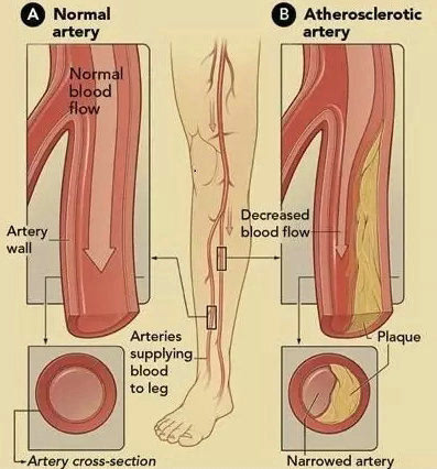 下肢動(dòng)脈硬化閉塞癥就是下肢動(dòng)脈血管?chē)?yán)重硬化,管腔出現(xiàn)狹窄甚至閉塞。
