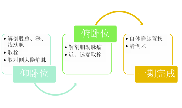(1)動(dòng)脈旁路術(shù)應(yīng)用人工血管或自體大隱靜脈,于閉塞血管近、遠(yuǎn)端正常血管之間建立旁路,分解剖內(nèi)旁路與解剖外旁路。解剖內(nèi)旁路按照原正常的動(dòng)脈血流方向構(gòu)建,符合人體的正常生理結(jié)構(gòu),為首選的方法;解剖外旁路適用于不能耐受手術(shù),以及解剖內(nèi)旁路走行區(qū)存在感染的患者。