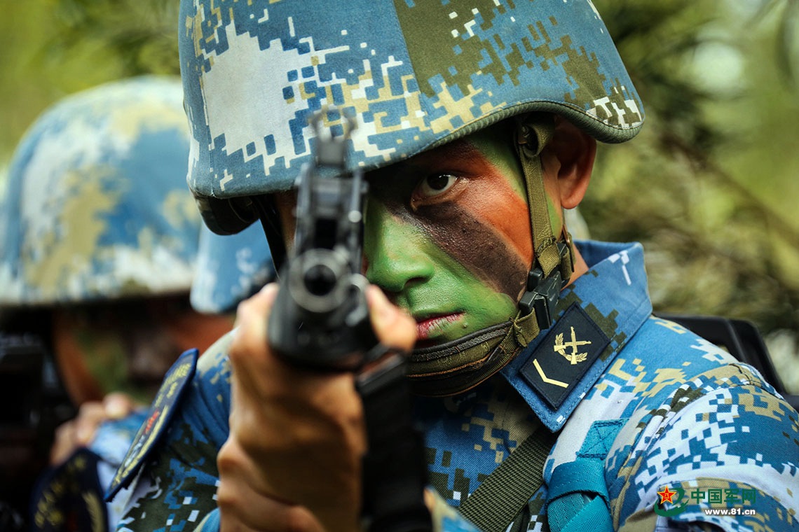 只見“兩棲霸王花”們身披偽裝服、臉涂迷彩油與山地叢林融為一體,時而快速機動滲透、時而捕殲運動之“敵”,最終采取“小群多路,向心破襲”的方式,悄無聲息間一舉將“敵”殲滅。