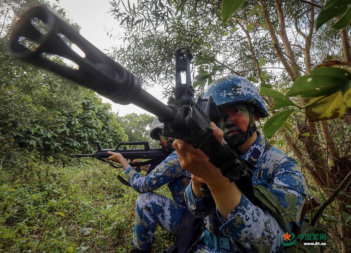 途經(jīng)叢林復(fù)雜地段,女兵作戰(zhàn)班組交替掩護(hù)。
