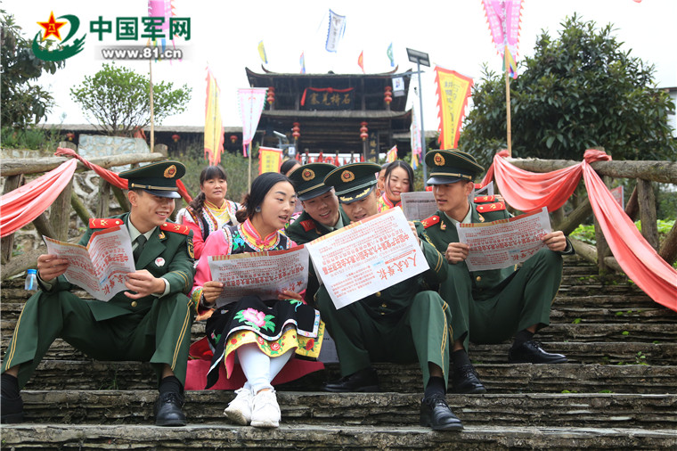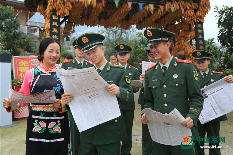 ?“黨的十九大報告跟咱們百姓息息相關(guān)的有許多,比如說,習(xí)主席強(qiáng)調(diào),要實現(xiàn)偉大夢想,必須進(jìn)行偉大斗爭、必須建設(shè)偉大工程、必須推進(jìn)偉大事業(yè),這個從咱們老百姓來講,咱們的夢想就是過上美好的日子,我們軍人也一樣,希望世界和平,國家繁榮昌盛……”在富有民族特色的羌寨臺階上,北川縣中隊指導(dǎo)員雷發(fā)明,手拿報紙為羌族百姓詳細(xì)解讀黨的十九大報告內(nèi)容。