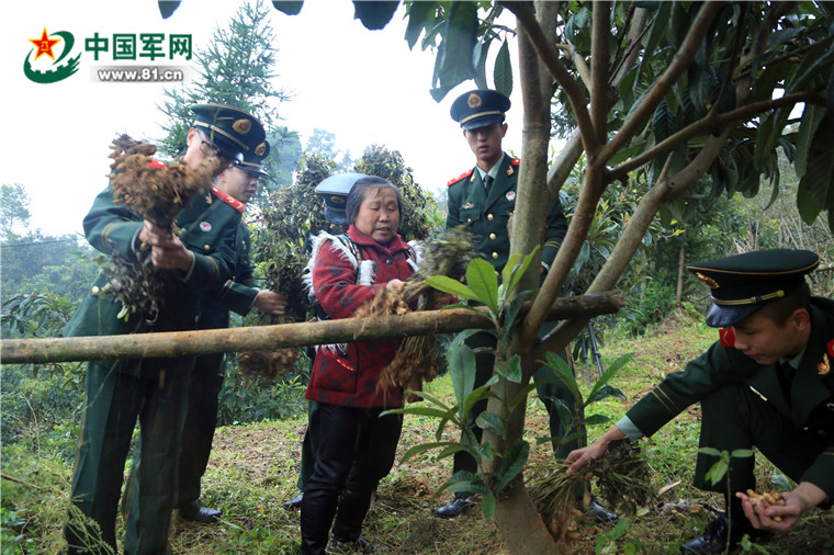 “奶奶,這么大的雨,你這是干嘛去呢?”剛到室內,眼尖的士官曾成對著一個拿著背簍沖向雨中的奶奶喊道,“哦,我山上晾的花生,下雨了我得把它收回家!”奶奶話音未落,戰(zhàn)士們商量好一般沖進雨中奪下了奶奶身上的背簍說道:“奶奶,這么大的雨,我們去幫你收吧!”奶奶見這些娃娃們態(tài)度堅決,就同意這些小戰(zhàn)友跟隨自己上山收花生,由于道路崎嶇,下雨后山路又特別泥濘,奶奶一路都在提醒戰(zhàn)士一定要注意安全。