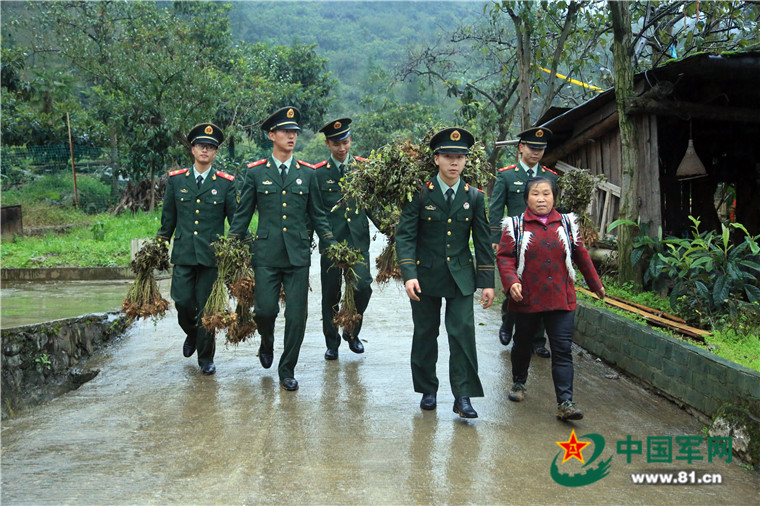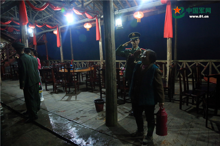 在回家的路上,官兵們得知奶奶名叫秦德翠,今年66歲,19歲參加過(guò)民兵隊(duì),丈夫是曾經(jīng)的村支書(shū),在5.12大地震中不幸遇難,現(xiàn)在還有一兒一女都在外打工,自己家經(jīng)營(yíng)著一個(gè)小型農(nóng)家樂(lè),現(xiàn)在是旅游淡季,就種了點(diǎn)地?;氐角啬棠碳抑?,她一個(gè)勁地說(shuō)謝謝,并將自家種的柿子拿出來(lái)和戰(zhàn)士們分享。