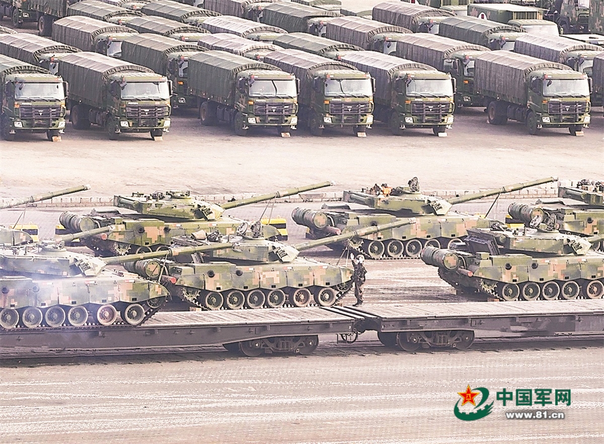 在該中心調(diào)度下,部隊裝備有序裝載。李彬喜攝