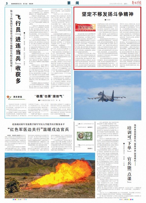 歷史是最好的教科書,也是最好的清醒劑。在大是大非面前敢于亮劍交鋒,在矛盾沖突面前敢于迎難而上,在危機(jī)困難面前敢于挺身而出……這些都是斗爭(zhēng)精神的體現(xiàn)。軍事斗爭(zhēng)是進(jìn)行偉大斗爭(zhēng)的重要方面。對(duì)于革命軍人來說,在國(guó)家主權(quán)、安全和領(lǐng)土完整遇到重大挑戰(zhàn)時(shí),人民軍隊(duì)沒有退路,必須針鋒相對(duì)、寸土必爭(zhēng)。習(xí)主席曾擲地有聲地指出:“中國(guó)人民不信邪也不怕邪,不惹事也不怕事,任何外國(guó)不要指望我們會(huì)拿自己的核心利益做交易,不要指望我們會(huì)吞下?lián)p害我國(guó)主權(quán)、安全、發(fā)展利益的苦果。”無論什么時(shí)候,這種敢于斗爭(zhēng)的精神都不能少。