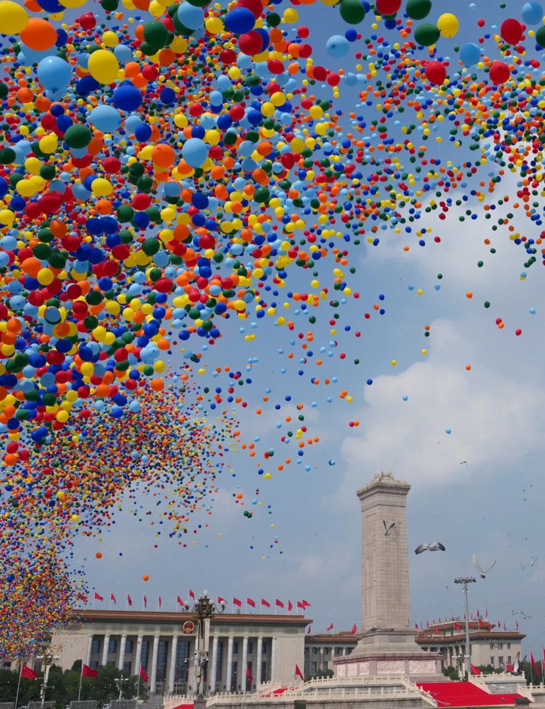 當(dāng)8萬(wàn)羽和平鴿展翅高飛,當(dāng)8萬(wàn)只氣球騰空而起,天安門(mén)城樓再次見(jiàn)證了莊嚴(yán)宣告。