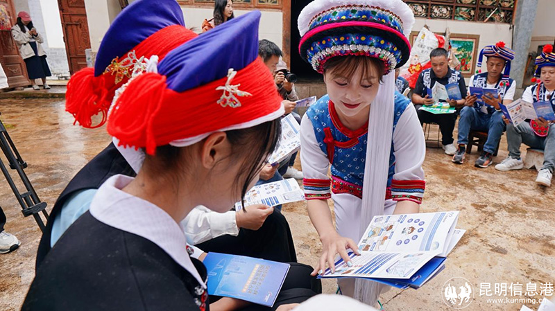 “洱源牛街溫泉暖,普法山歌傳四方……”活動現(xiàn)場,清脆的歌聲在村民小廣場響起,“洱源美好推薦官”白水與牛街溫泉小鎮(zhèn)居民共同演唱的普法山歌,將活動推向高潮。這首由白水聯(lián)合當(dāng)?shù)胤沁z傳承人、商戶創(chuàng)作的山歌,把反詐知識、誠信經(jīng)營、交通安全等內(nèi)容融入白族調(diào),“繡花圖美心思巧,電詐伎倆更花哨”等歌詞朗朗上口,讓法治理念隨歌聲傳遍村寨。