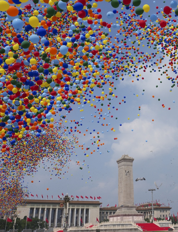 2025年9月3日,紀(jì)念中國(guó)人民抗日戰(zhàn)爭(zhēng)暨世界反法西斯戰(zhàn)爭(zhēng)勝利80周年大會(huì)在北京隆重舉行。這是紀(jì)念大會(huì)現(xiàn)場(chǎng)放飛氣球和鴿子。新華社 發(fā)