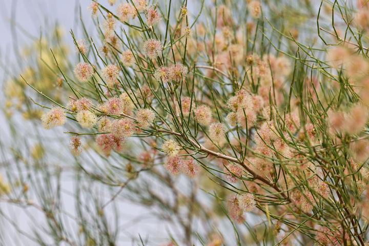 這是5月19日拍攝的和若鐵路沿線種植的沙拐棗。新華社記者丁磊攝