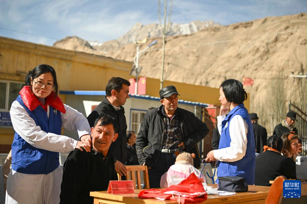 在新疆塔什庫爾干塔吉克自治縣庫科西魯格鄉(xiāng)衛(wèi)生院,深圳援疆中醫(yī)康復科醫(yī)生段靜(左一)為村民診療(2025年3月24日攝)。