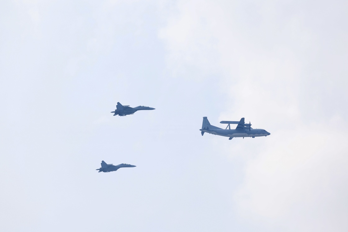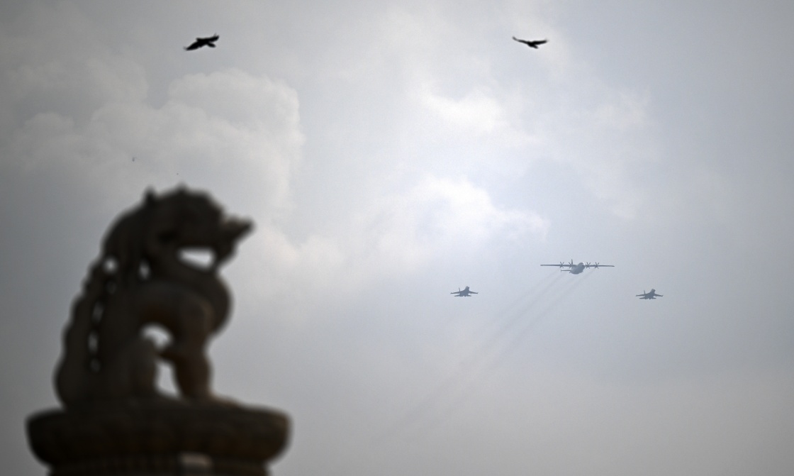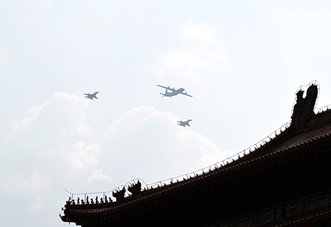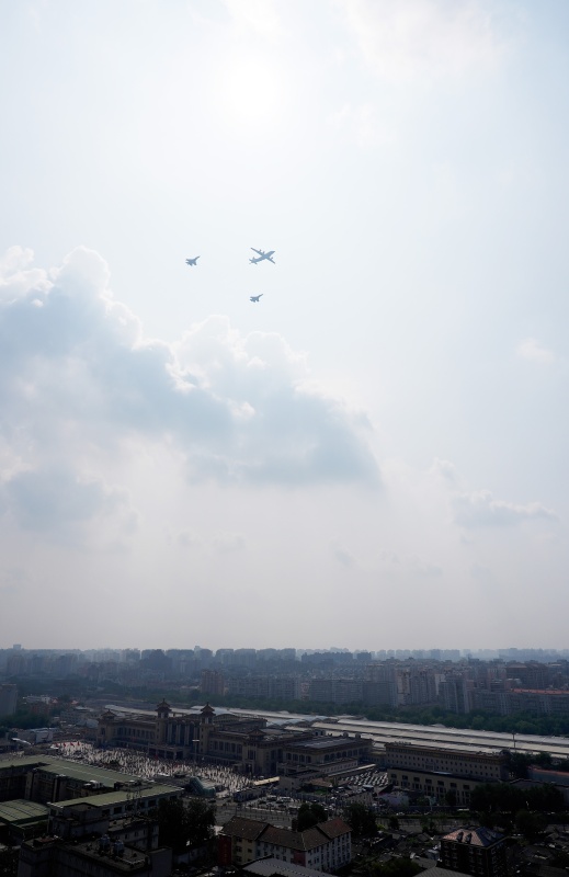 9月3日,紀(jì)念中國人民抗日戰(zhàn)爭暨世界反法西斯戰(zhàn)爭勝利80周年大會(huì)在北京隆重舉行。這是特種機(jī)梯隊(duì)從北京城區(qū)上空飛過。
