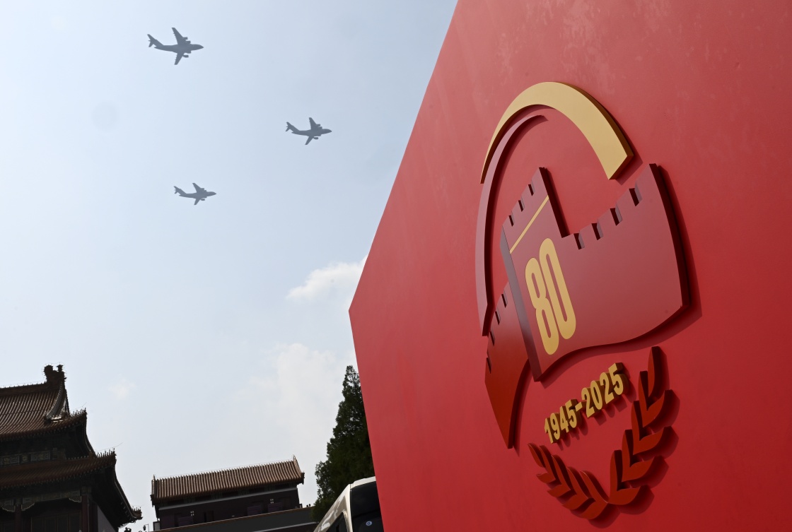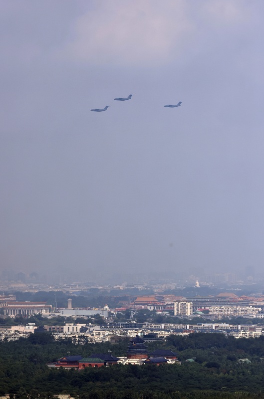 9月3日,紀念中國人民抗日戰(zhàn)爭暨世界反法西斯戰(zhàn)爭勝利80周年大會在北京隆重舉行。這是在北京天壇公園拍攝的運輸機梯隊。