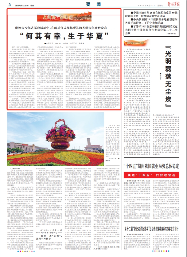 當儀仗方隊高擎黨旗、國旗、軍旗闊步走來,當80面抗戰(zhàn)英模部隊榮譽旗幟在風中獵獵飄揚,那一刻,這名00后香港青年將中國紅深深刻印于心。