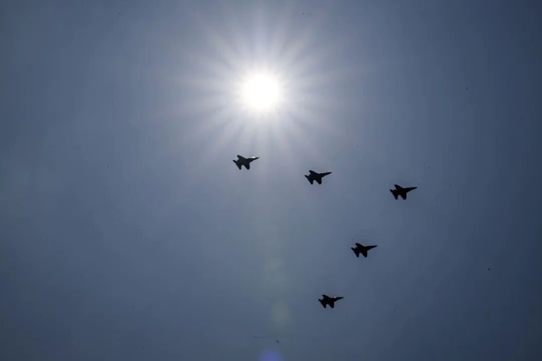 9月3日,紀(jì)念中國(guó)人民抗日戰(zhàn)爭(zhēng)暨世界反法西斯戰(zhàn)爭(zhēng)勝利80周年大會(huì)在北京隆重舉行。這是殲擊機(jī)梯隊(duì)接受檢閱。新華社記者 連振 攝