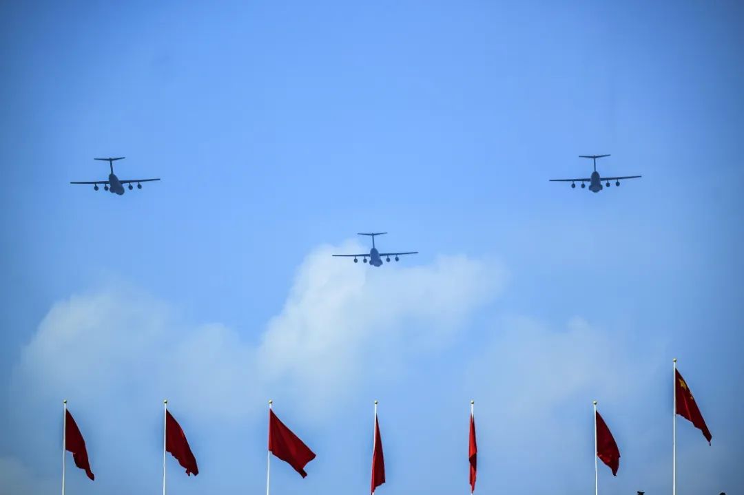9月3日,紀(jì)念中國(guó)人民抗日戰(zhàn)爭(zhēng)暨世界反法西斯戰(zhàn)爭(zhēng)勝利80周年大會(huì)在北京隆重舉行。這是運(yùn)輸機(jī)梯隊(duì)接受檢閱。新華社記者 戴翹楚 攝