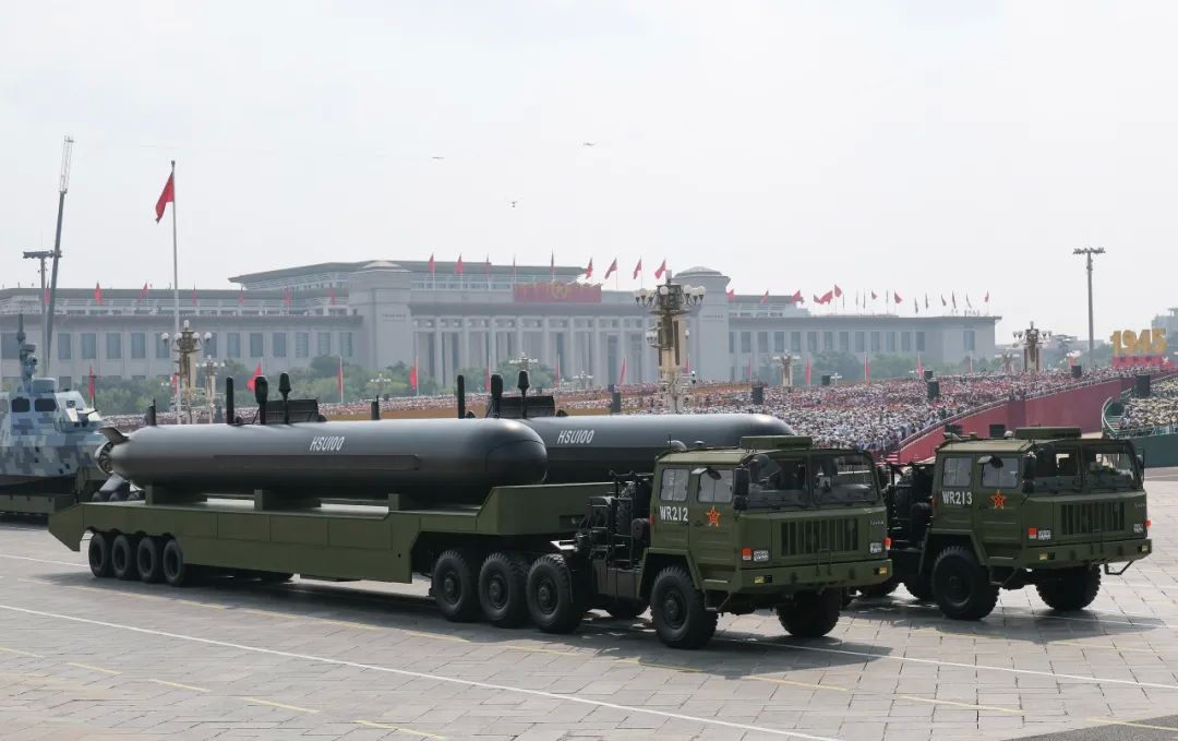 9月3日,紀(jì)念中國人民抗日戰(zhàn)爭暨世界反法西斯戰(zhàn)爭勝利80周年大會在北京隆重舉行。這是高超聲速導(dǎo)彈方隊通過天安門廣場。新華社記者 孫瑞博 攝