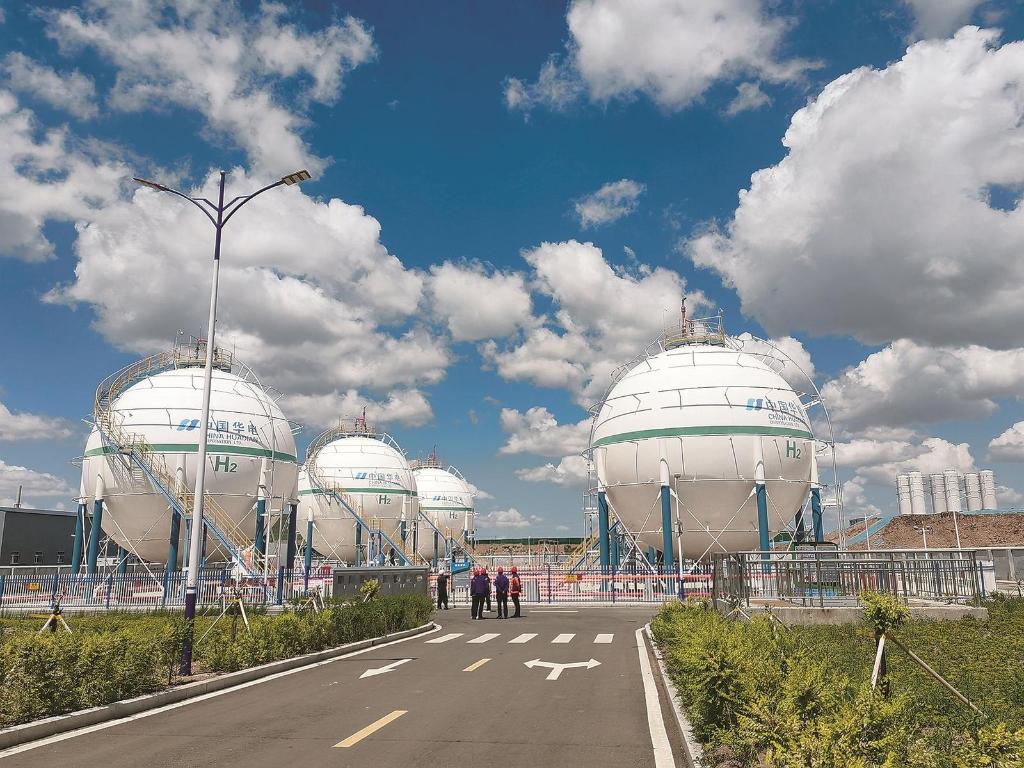 這是內(nèi)蒙古華電氫能科技有限公司的儲氫罐區(qū)。(受訪者供圖)