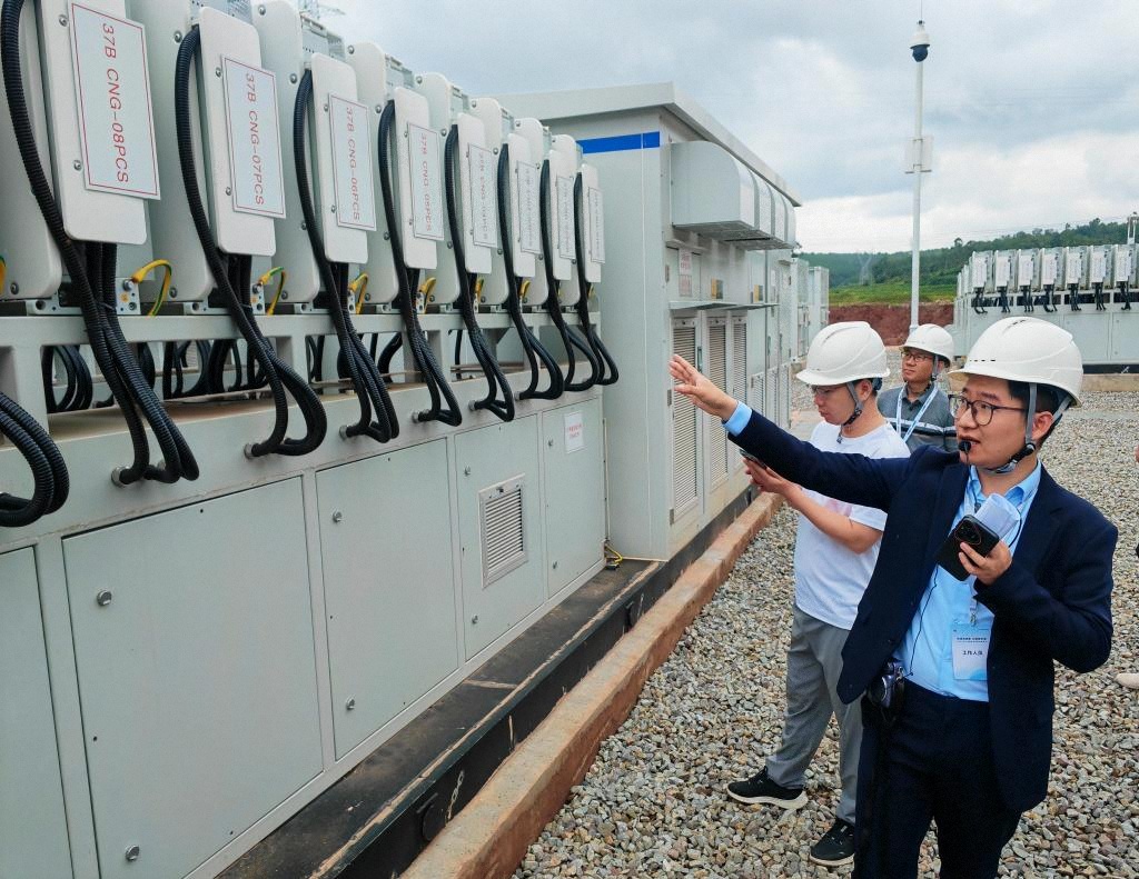 2025年7月24日,在云南省楚雄市呂合鎮(zhèn)境內(nèi),工作人員正在介紹一儲(chǔ)能項(xiàng)目。新華社記者 浦超 攝