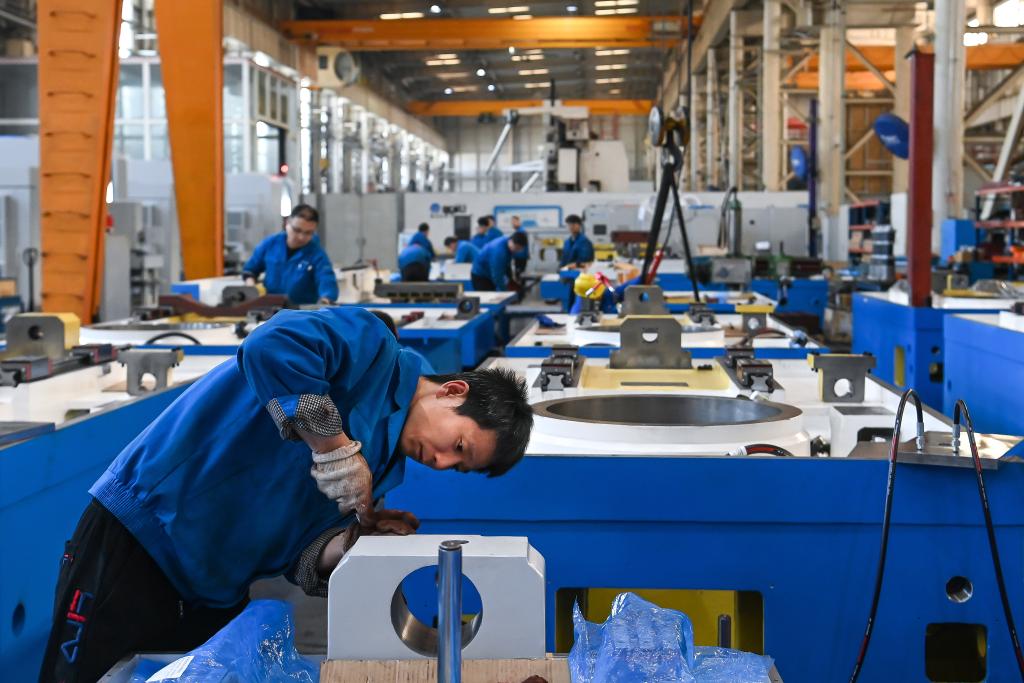 2月26日,工作人員在位于寶雞市渭濱區(qū)的陜西秦川機(jī)床工具集團(tuán)股份公司生產(chǎn)車間加工零部件。新華社記者 鄒競(jìng)一 攝