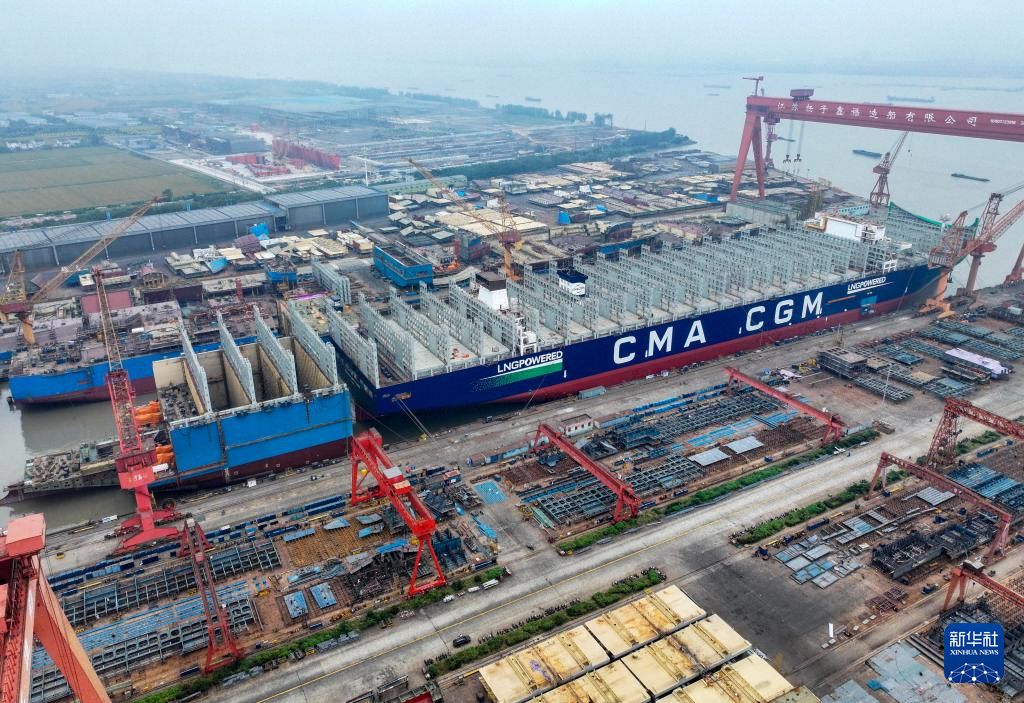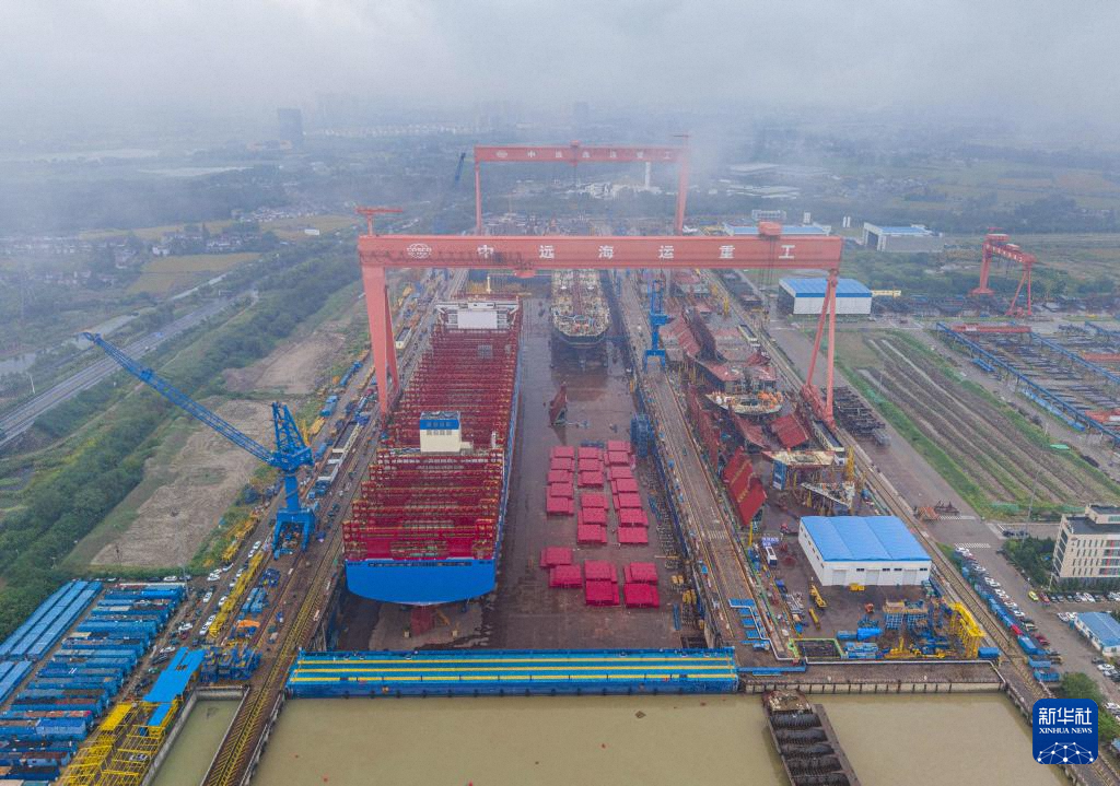 10月14日拍攝的位于江蘇省江都經(jīng)濟(jì)開(kāi)發(fā)區(qū)的揚(yáng)州中遠(yuǎn)海運(yùn)重工有限公司生產(chǎn)廠區(qū)(無(wú)人機(jī)照片)。新華社發(fā)(任飛攝)
