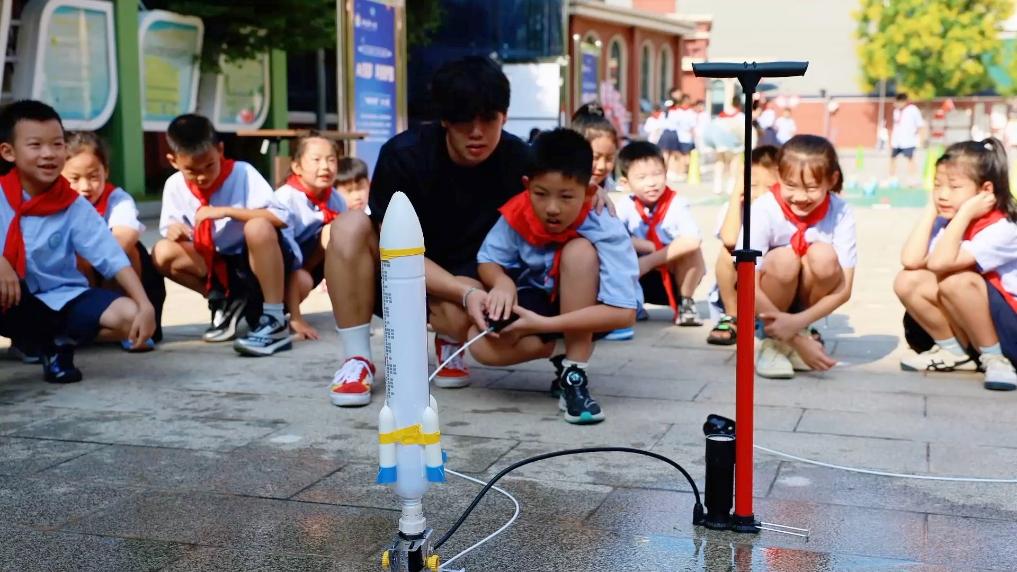 在湖南省常德市,武陵區(qū)第一小學(xué)組織了一場主題為“AI筑夢,科技護(hù)國”的科創(chuàng)節(jié)活動(dòng),學(xué)校精心設(shè)置了“火箭發(fā)射”“機(jī)械手臂”“空氣大炮”等11個(gè)科技體驗(yàn)項(xiàng)目,將趣味性與知識(shí)性融為一體。