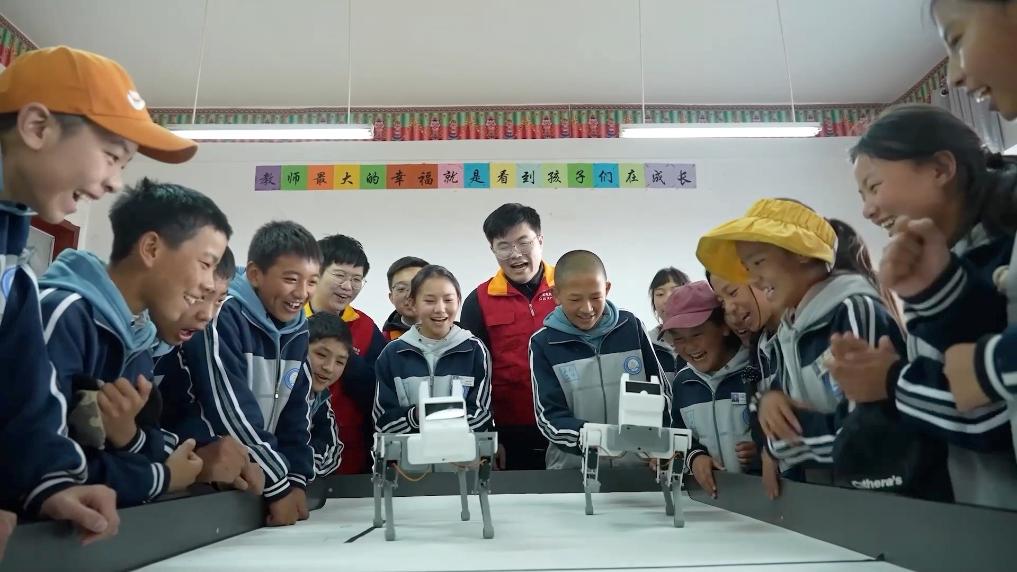國家電網(wǎng)杭州供電公司“點(diǎn)亮玉樹”公益團(tuán)隊(duì)聯(lián)合青海省玉樹市第二民族中學(xué)開展“AI教育”計(jì)劃,志愿者為孩子們帶去了豐富有趣的人工智能課程,指導(dǎo)他們完成智能機(jī)器狗的組裝和編程。