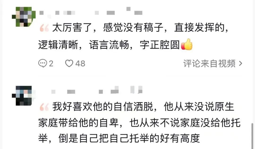有新生在社交平臺(tái)上分享了自己拍攝的視頻,并稱:“在清華,終于看到了兒時(shí)的榜樣。”還有新生稱:“演講太勵(lì)志了,全程脫稿?!?/p>