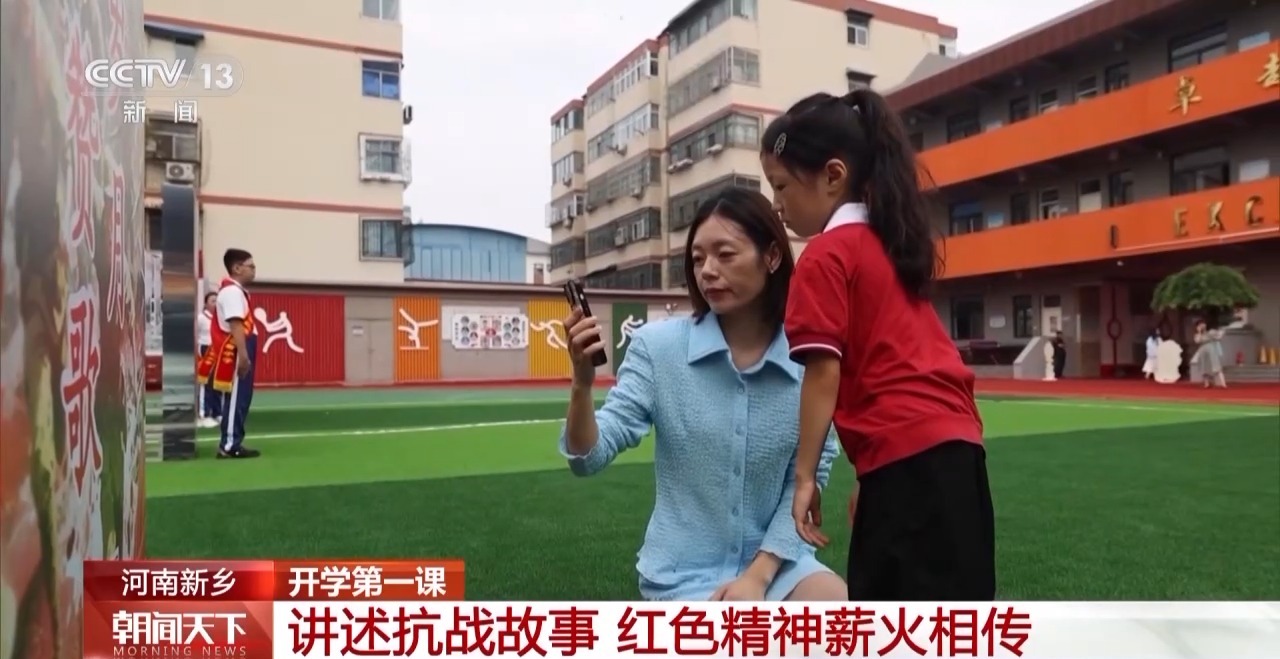 在河南新鄉(xiāng),紅旗區(qū)實(shí)驗(yàn)小學(xué)把愛(ài)國(guó)主義教育與開(kāi)學(xué)典禮相結(jié)合,為孩子們帶來(lái)了難忘的開(kāi)學(xué)第一課。學(xué)校舉辦了抗戰(zhàn)主題展覽,以“山河破碎”“烽火歲月”“勝利之光”“薪火相傳”四個(gè)篇章展現(xiàn)抗戰(zhàn)歷程,還配有專(zhuān)屬二維碼,家長(zhǎng)掃碼即可和孩子一起收聽(tīng)革命故事音頻、觀看英雄人物短視頻?!靶⌒≈v解員”們則聲情并茂地為一年級(jí)新生講述抗戰(zhàn)故事。