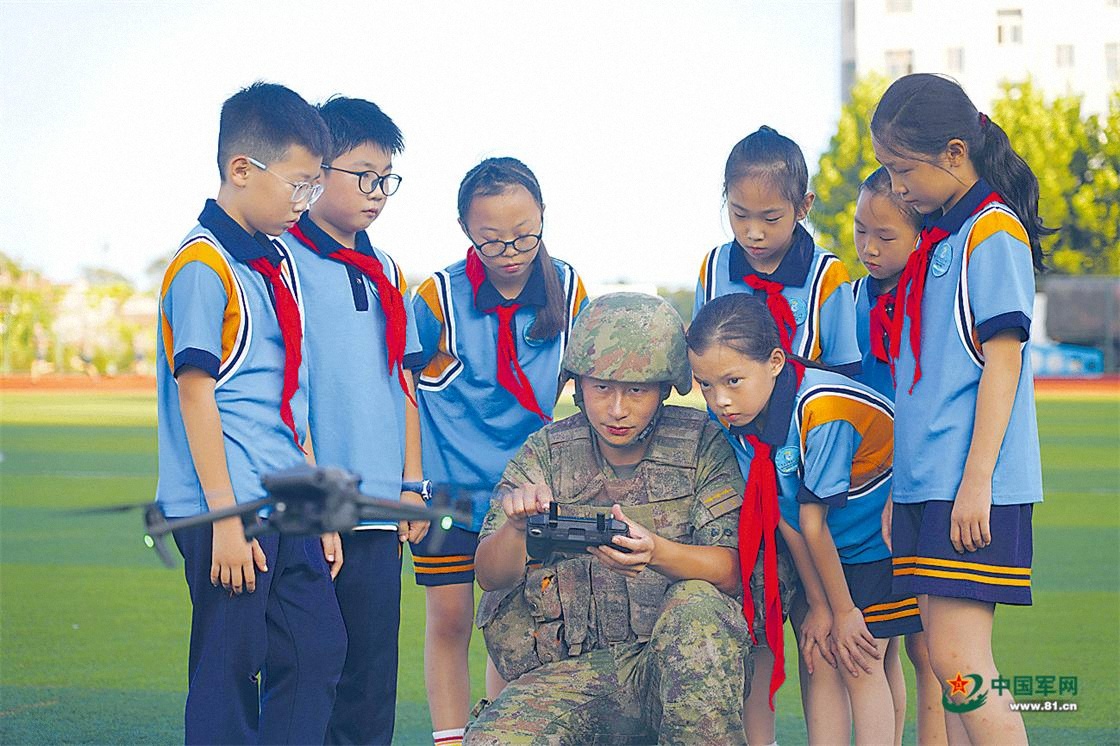 開(kāi)學(xué)前夕,第80集團(tuán)軍某旅官兵走進(jìn)駐地小學(xué)開(kāi)展國(guó)防教育。
