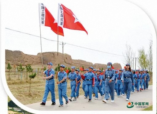 “六盤山呀山高峰,赤旗漫卷西風。今日得著長纓,同志們,何時縛住蒼龍?”六盤山上,毛澤東回顧艱難歷程,展望革命未來,一首《長征謠》直抒胸臆,這便是《清平樂·六盤山》一詞的雛形。前不久,彭陽縣人武部組織專武干部和民兵沿古長城重走長征路,感悟氣壯山河的革命樂觀主義精神。