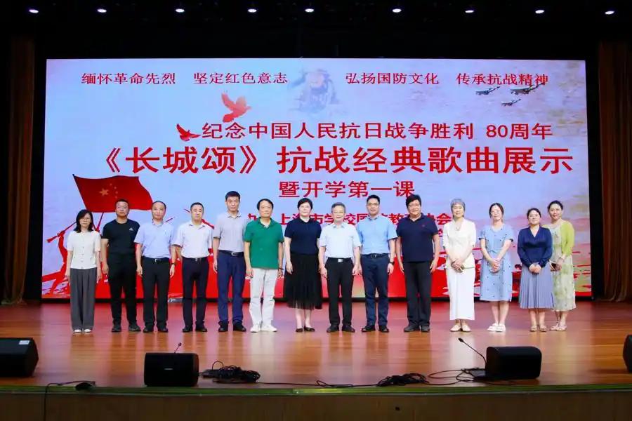 9月,全國(guó)集中組織開(kāi)展“全民國(guó)防教育月”活動(dòng)。9月1日,由上海市學(xué)校國(guó)防教育協(xié)會(huì)主辦,上海師范大學(xué)附屬中學(xué)承辦的新學(xué)期開(kāi)學(xué)第一課——紀(jì)念中國(guó)人民抗日戰(zhàn)爭(zhēng)勝利80周年——“長(zhǎng)城頌”抗戰(zhàn)經(jīng)典歌曲視頻展示活動(dòng),在上師大附中三林校區(qū)舉行。師生們集體觀看了由中共第十七屆中央委員、原總政治部副主任兼軍紀(jì)委書記童世平上將策劃、編導(dǎo)、制作的《長(zhǎng)城頌》抗戰(zhàn)經(jīng)典歌曲視頻播放,在歌聲中,沉浸式體會(huì)和感悟中國(guó)共產(chǎn)黨團(tuán)結(jié)帶領(lǐng)全國(guó)各族人民浴血奮斗、英勇?tīng)奚罱K取得抗戰(zhàn)偉大勝利 的光輝歷程。