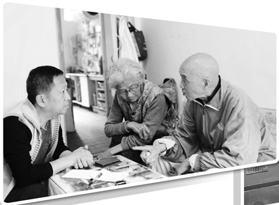 李若冰(左一)到抗戰(zhàn)老兵家中走訪。劉 勝 攝