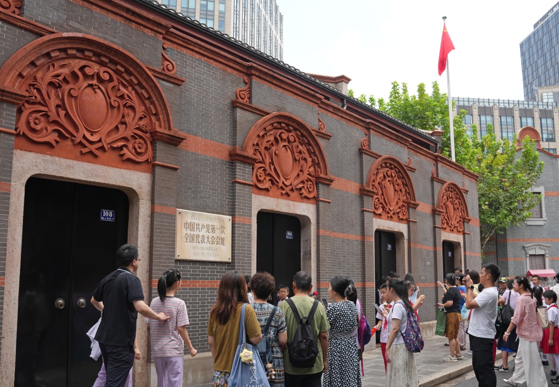 10月1日,游客在上海中共一大會(huì)址前參觀拍照。