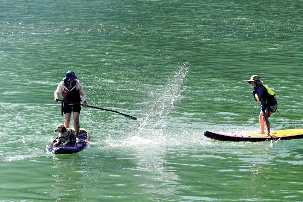 10月4日,游客在云南大理南澗彝族自治縣公郎鎮(zhèn)猛龍渡體驗(yàn)槳板。新華社發(fā)(適志宏攝)