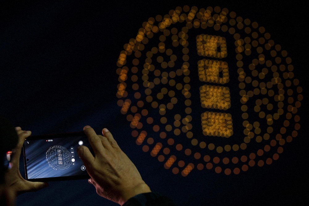 10月4日晚,在浙江省金華市武義縣花田美地景區(qū),精彩的無人機(jī)表演為游客呈現(xiàn)了一場視覺盛宴。新華社發(fā)(張建成攝)