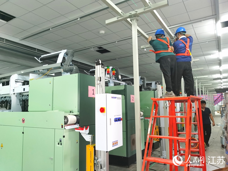 工人加緊安裝調(diào)試碳中和智慧紡紗工廠設(shè)備。人民網(wǎng)記者 王繼亮 攝