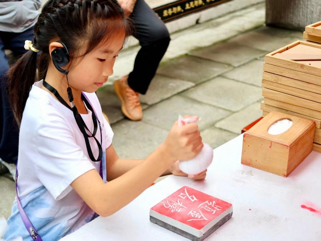 在濟寧曲阜孔廟景區(qū),游客體驗拓印。(受訪者供圖)