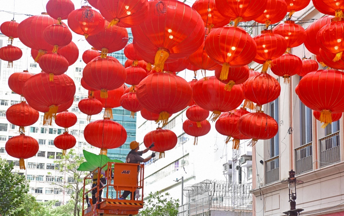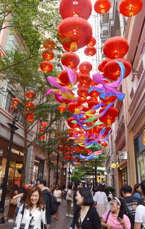 隨著國慶、中秋的臨近,香港街頭張燈結(jié)彩。