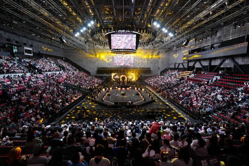10月3日,人們在北京首鋼園區(qū)觀看世界乒乓球職業(yè)大聯(lián)盟(WTT)中國大滿貫賽。新華社記者 張晨霖 攝