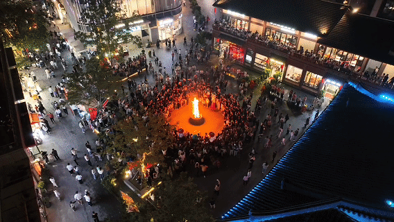 中秋節(jié)來臨之際,位于安徽省阜陽市潁州區(qū)的雙清灣水街熱鬧非凡,一場延續(xù)近800年的中秋火把祈福習(xí)俗煥新登場,連串的火把依次亮起,如火龍蜿蜒穿行,吸引近5000名市民打卡。