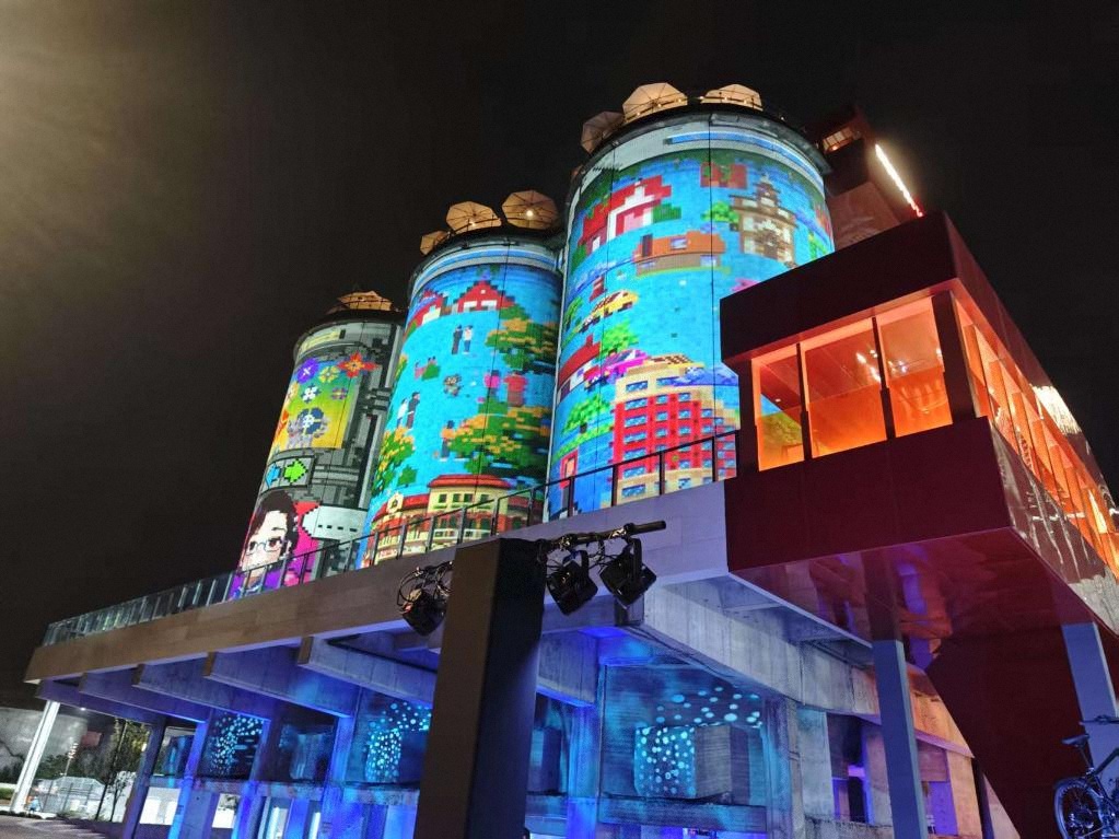 在上海徐匯濱江西岸夢中心,百年水泥廠的“大砼倉”化身為“賽博建筑”。新華社記者張夢潔攝
