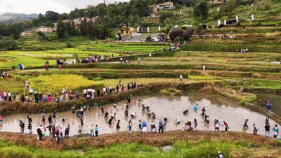 在云南省紅河州,元陽哈尼小鎮(zhèn)國慶假期舉辦了首屆哈尼梯田泥濘挑戰(zhàn)賽。“泥地尋寶”“梯田拔河”“稻田捕魚”等項目趣味十足。300余名參賽選手們在梯田間奔跑,體驗別樣的農(nóng)耕樂趣。